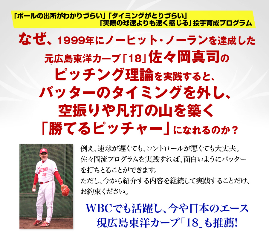 ※こちらのブログで佐々岡真司の佐々岡流ピッチングの極意をお申込みされた方には、無料ボーナス特典をプレゼント!詳しくは、佐々岡真司の佐々岡流ピッチングの極意のお申込みページをご覧下さい。